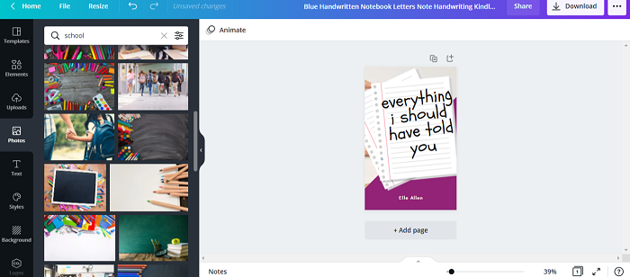 從左側面板的**文字**選項新增文字到你的電子書。插入文字時,請確保使用與你的電子書封面相符的字型和顏色。