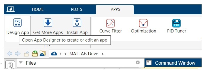 **步驟 (1)** – 開啟 MATLAB 並啟動 App Designer。有兩種方法可以做到這一點
