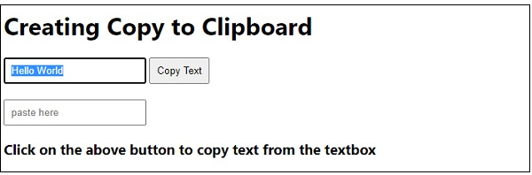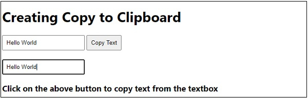 <h3>Click on the above button to copy text from the textbox</h3>