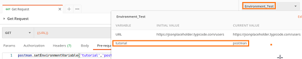 postman.setEnvironmentVariable('tutorial','postman')這將在 Environment_Test 環境中建立一個變數,名稱為教程,值為郵遞員。