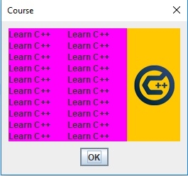 JOptionPane.showMessageDialog(null, panel2, "Course",JOptionPane.DEFAULT_OPTION);