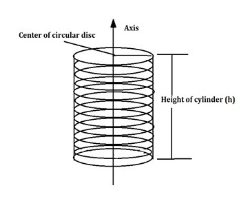 它由平行的圓盤組成;我們可以說許多圓盤構成一個圓柱體。如果我們連線所有圓盤的中心,連線軸的線段就是圓柱體的高度。