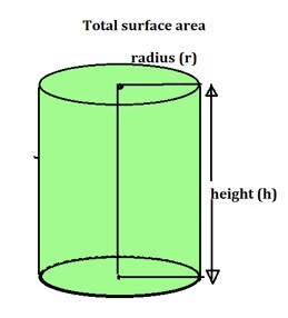 圓柱體的總表面積是兩個圓的面積和彎曲或側表面的面積之和,其公式如下: