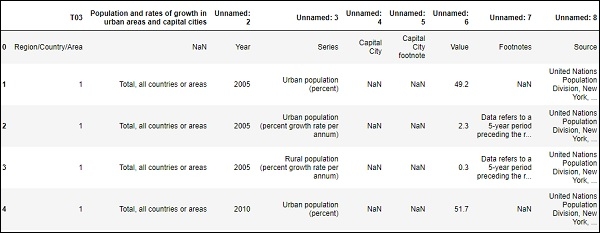 #import pandas library import pandas as pd #Read csv file and assigned it to dataframe variable df = pd.read_csv("SYB61_T03_Population Growth Rates in Urban areas and Capital cities.csv",encoding = "ISO-8859-1") #Read first five element from the dataframe df.head()