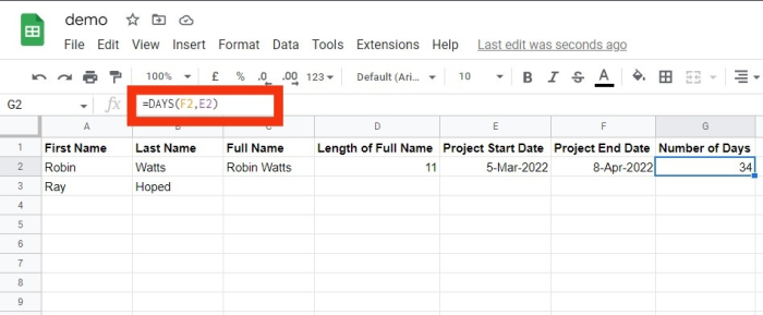 此函式 =DAYS 可用於確定兩個日期之間有多少天。