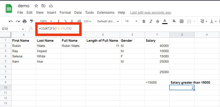 使用電子表格進行資料分析的另一個有效工具是 COUNTIFS() 函式。