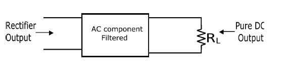 在實踐中,整流器用於在電子電路中產生純直流電源。但整流器的輸出不是純直流,它有脈動,即包含交流和直流分量。交流分量是不可取的,必須去除。為此,使用濾波電路。