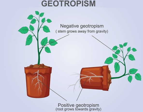 隨著根部的生長,它會朝向地球表面彎曲,根部下側的細胞比上側的細胞伸長得更多。 這導致根部向下彎曲進入土壤,在那裡它可以繼續生長和發育。