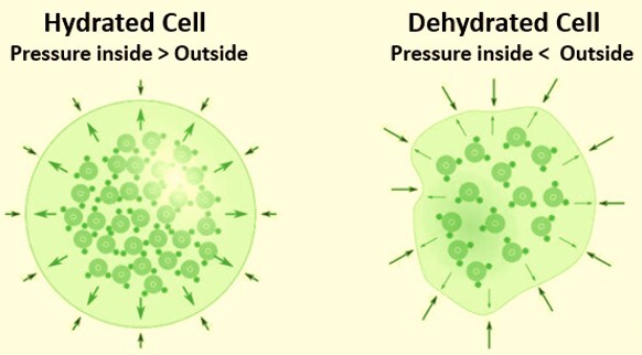 在眾多細胞(例如構成人體的一個細胞)中的水會產生壓力,抵抗外部因素,例如給氣球充氣。因此,植物,特別是那些無法利用水維持其細胞結構的植物,需要水才能生存。水使細胞內的所有物質都具有正確的分子形式。因為形狀對於生物過程至關重要,所以這是水最重要的功能之一。