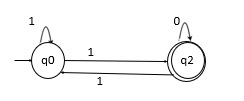 在字母表 Σ={0,1} 上僅接受奇數個 1 的 DFA