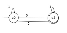 在字母表 Σ={0,1} 上僅接受偶數個 1 的 DFA