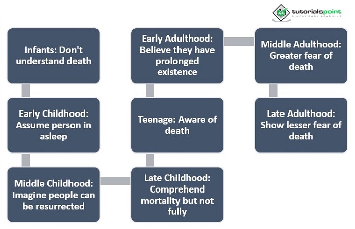 如果隨機問起死亡對我們意味著什麼或我們是否害怕死亡,這似乎是一個奇怪的問題。然而,更奇怪的是不同年齡段的人對同一個問題的回答有多麼不同。從年少到年老,我們對死亡的理解不斷發展。個人對死亡的看法受其智力發展、社會習俗、家庭責任和情感的影響。