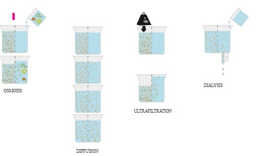 透析過程遵循一個特定的原理,其中透過半透膜過濾液體。這與溶質的擴散過程相結合。在此過程中,會參考擴散過程,導致逆濃度梯度的流動。