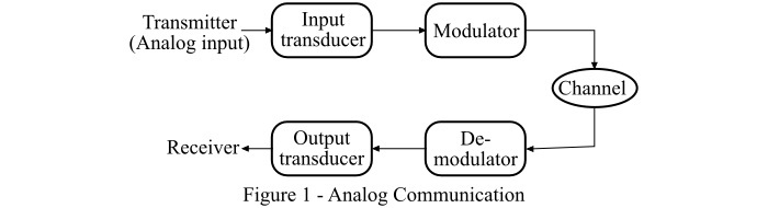 在發射機和接收機之間使用模擬訊號傳輸資料和資訊的那種通訊方式稱為**模擬通訊**。因此,模擬通訊使用**連續時間訊號**來傳輸資訊。
