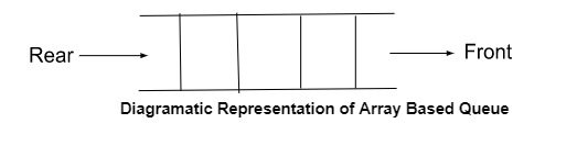 使用陣列實現的佇列稱為基於陣列的佇列。它使用兩個指標:頭部(Front)和尾部(Rear),分別表示佇列中的刪除和插入點。