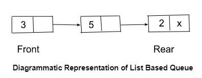 每個佇列元素都連線到下一個佇列元素的記憶體。在基於列表的佇列中,有兩個指標: