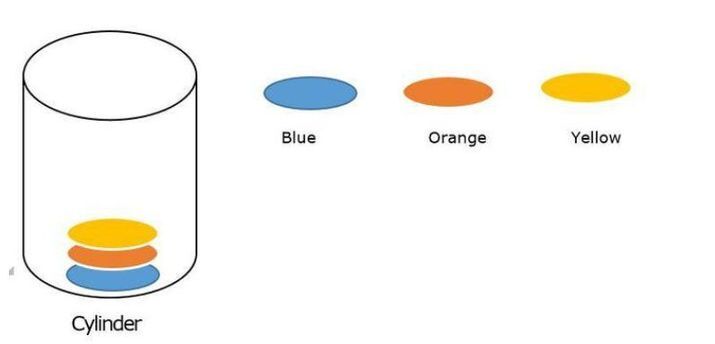 在下圖中,有三種顏色需要使用蠻力法的所有可能解決方案填充到圓柱體中。