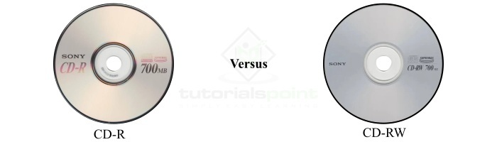 下表突出顯示了 CD-R 和 CD-RW 之間所有重要的區別 -
