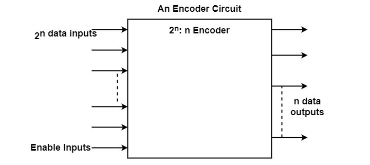 輸入通常透過多條線提供,表示為 2n 條輸入線。這裡,2n 表示它可以編碼的最大輸入線條數。然後對它們應用一些邏輯,並將其轉換為 n 條輸出線的二進位制程式碼。這些輸出線充當解碼器的輸入線的來源。
