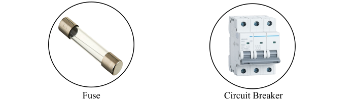 電路是由連線在一起的電路元件組成的,用於將電力從電源傳輸到負載。有時,電路中的電力(或電壓或電流)可能會突然升高,從而損壞負載或電路中的其他裝置。因此,為了保護電路和電器免受電路異常造成的損壞,電路中使用了兩種保護裝置,即**熔斷器**和**斷路器**。
