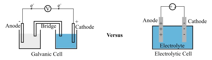 原電池和電解池都是電化學電池的型別。然而,原電池和電解池之間存在許多差異,在下表中列出: