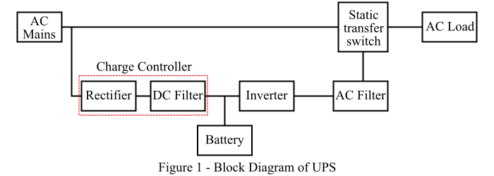 在實際應用中,UPS主要用於計算機和其他IT系統,以便在突然斷電時提供足夠的電量來儲存資料並安全地關閉計算機。典型UPS的框圖如圖1所示。