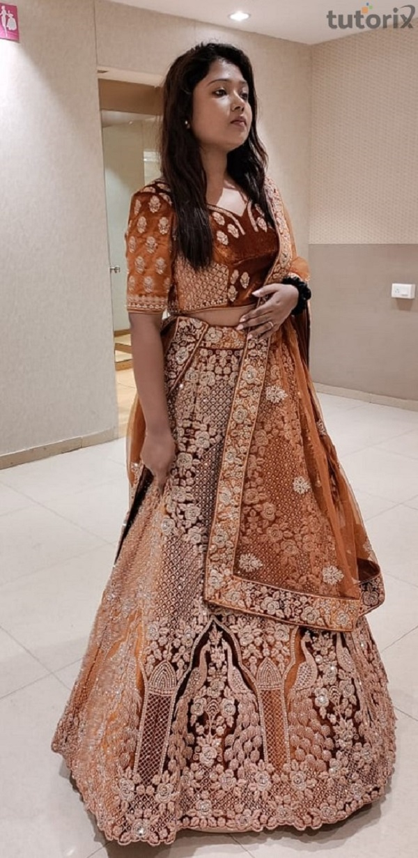 Lehenga 是一種三件套服裝。這三件分別是 lehenga、choli 和 dupatta。如前所述,lehenga 是一條長裙,choli 是一件飾有精美刺繡的短上衣,dupata 是一塊長布,通常用來遮蓋女性身體的上半部分。