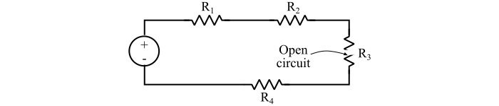 開路對串聯電路和並聯電路的影響不同。也就是說,在串聯電路中,可以觀察到以下症狀: