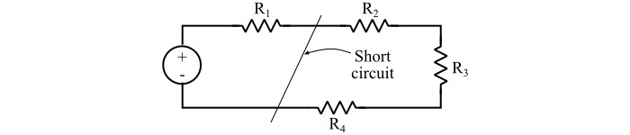 $$\mathrm{R\:=\:\frac{V}{\infty}\:=\:0}$$因此,理想情況下,短路在電流路徑中提供零歐姆電阻。