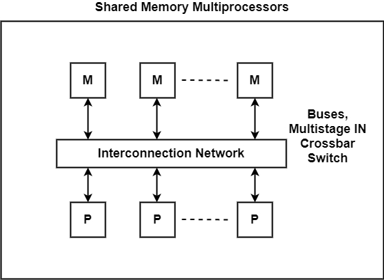 在共享記憶體多處理器中,多個處理器訪問一個或多個共享記憶體模組。處理器可以透過多種方式物理連線到記憶體模組,但在邏輯上,每個處理器都連線到每個記憶體模組。