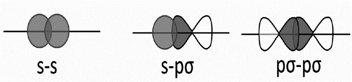 這裡,兩個半充滿的s軌道之間發生相互作用的位點是核間軸,如下圖所示。