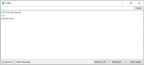 同樣,如果使用的開發板使用 4 個位元組(32 位)來表示整數,則無符號整數的範圍將是從 0 到 4,294,967,295 (232 - 1),而有符號整數的範圍將是從 – 2147483647 到 +2147483647。注意 2147483647 對應於 (231 - 1)。