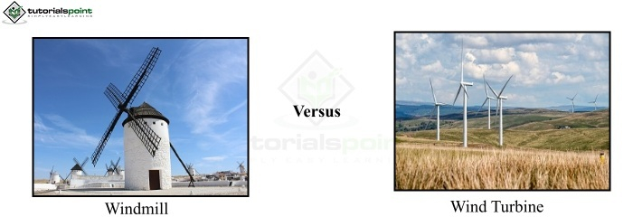 | 應用 | 風車用於研磨穀物、抽水、驅動機器、破碎岩石、切碎農業材料等。 | 風力渦輪機主要用於為家庭和商業用途發電。 |