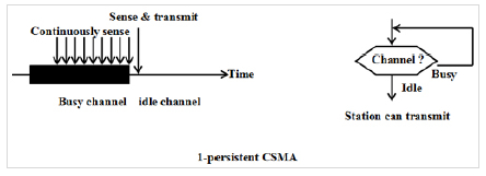 在這種方法中,要傳輸資料,站點會持續偵聽通道以檢查通道是繁忙還是空閒。