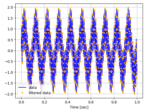 步驟4 - 現在,我們將使用scipy.signal.filtfilt()函式對給定的輸入訊號應用濾波器,以執行零相位濾波。