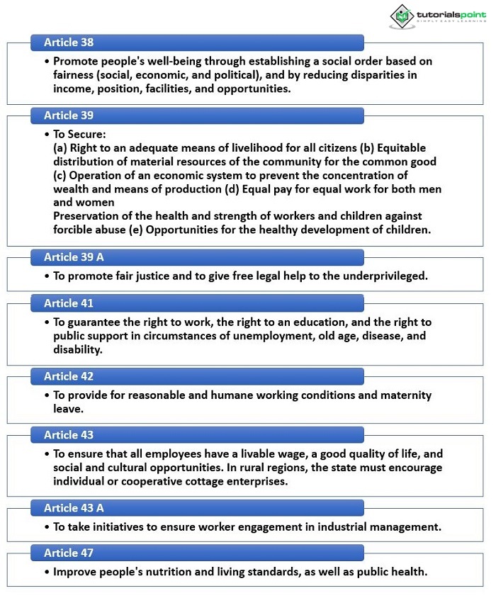 國家政策指導原則的目的是“國家福利”。指導原則是中央和州政府在制定政策或透過立法時必須遵循的準則。它們確立了適合印度獨特情況的具體社會、經濟或政治理念。