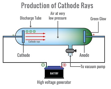 在 19 世紀 90 年代初,物理學家 J.J. 湯姆遜(J.J.T.)對陰極射線管 (CRT) 進行了研究。這是一種真空密封的玻璃管。在管的一側的兩個電極上施加高電壓,導致一束粒子從陰極移動到陽極。