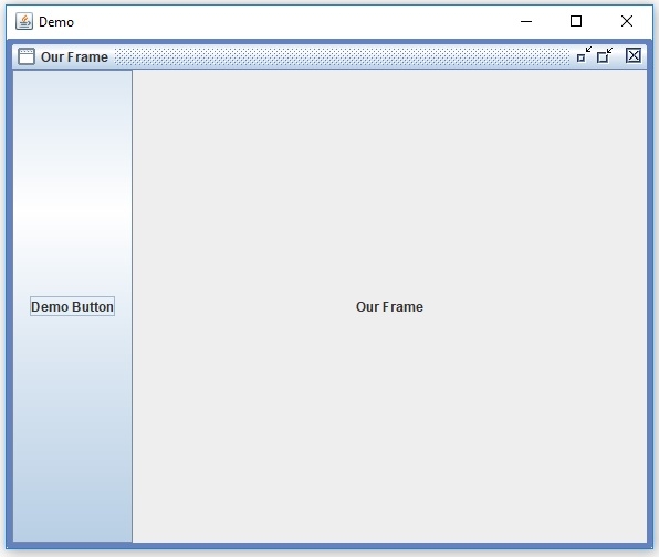 JInternalFrame intFrame = new JInternalFrame("Our Frame", true, true, true, true);