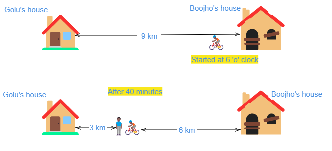 布盧家和古盧家相距9公里。布盧必須在7點參加古盧的生日派對。他6點從家出發騎腳踏車,40分鐘內行駛了6公里。這時他遇到了欽圖,和他聊了5分鐘,然後在7點到達古盧的生日派對。他在旅程的第二部分以什麼速度行駛?計算他整個旅程的平均速度。