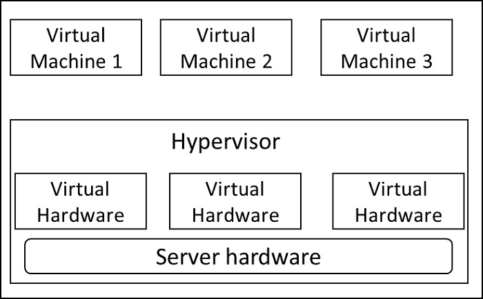 它可以透過虛擬機器監控器 (VMM) 來提取物理硬體。 | 在作業系統虛擬化中,沒有任何內容預先安裝/永久載入到本地裝置上,也不需要硬碟驅動器。 一切都在網路上執行,使用一種虛擬磁碟。 |