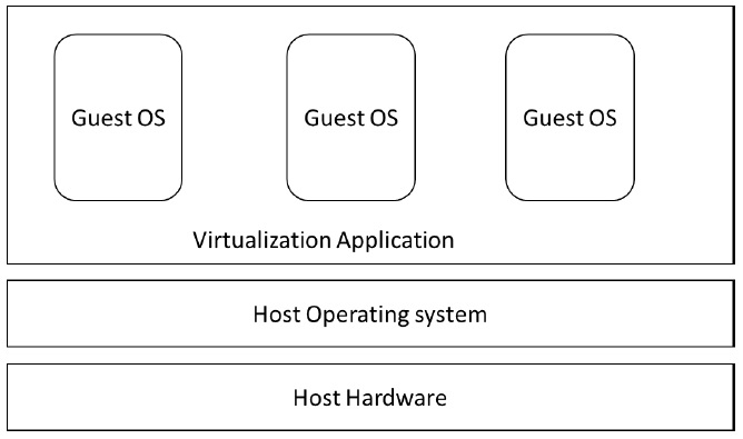 概念 共享硬體安裝在虛擬機器監控器 (VMM) 或稱為管理程式上。VirtualBox、VMware Workstation 和 Hyper-V 安裝在這些管理程式上,我們可以在此特定硬體上安裝不同的虛擬機器。所有虛擬機器都有不同的應用程式。 | 概念 在主機硬體上,我們安裝主機作業系統。管理程式/VirtualBox/VMware Workstation 首先安裝到完整的宿主作業系統中。使用此軟體,我們可以在機器上安裝多個作業系統。 |