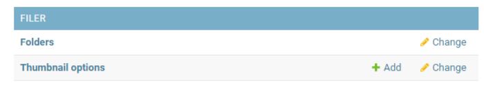 INSTALLED_APPS = [ ... 'easy_thumbnails', 'filer', 'mptt', ... ] THUMBNAIL_HIGH_RESOLUTION = True THUMBNAIL_PROCESSORS = ( 'easy_thumbnails.processors.colorspace', 'easy_thumbnails.processors.autocrop', #'easy_thumbnails.processors.scale_and_crop', 'filer.thumbnail_processors.scale_and_crop_with_subject_location', 'easy_thumbnails.processors.filters', )