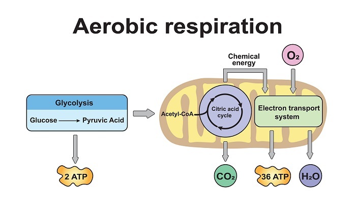 有氧呼吸在氧氣存在下發生,是產生能量最有效的方式。此過程包括將葡萄糖分解成二氧化碳和水,並以ATP(三磷酸腺苷)的形式釋放能量。有氧呼吸的化學方程式為: