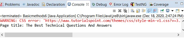 import org.openqa.selenium.By; import org.openqa.selenium.WebDriver; import java.util.concurrent.TimeUnit; import org.openqa.selenium.htmlunit.HtmlUnitDriver; public class HeadlessMode{ public static void main(String[] args) { //HtmlUnitDriver initialization HtmlUnitDriver driver = new HtmlUnitDriver(); driver.get("https://tutorialspoint.tw/questions/index.php"); // wait of 5 seconds driver.manage().timeouts().implicitlyWait(5, TimeUnit.SECONDS); System.out.println("Page title: " + driver.getTitle()); } }