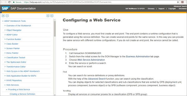 您還可以參考此 SAP 站點連結以配置 Web 服務