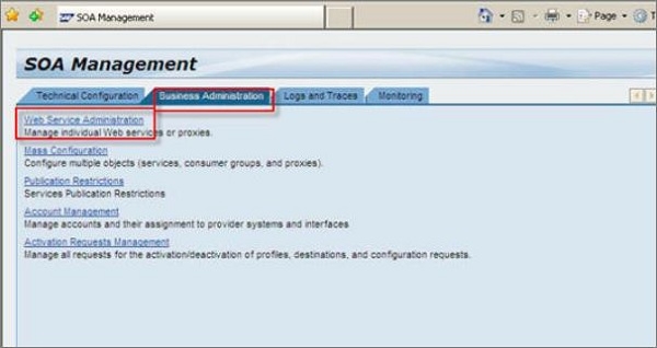要將 RFC 轉換為 Web 服務,您必須使用 T 程式碼:SOAMANAGER -> Web 服務管理。
