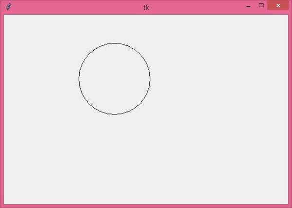 #Import the library from tkinter import * #Create an instance of tkinter frame win= Tk() #Define the geometry of window win.geometry("600x400") #Create a canvas object c= Canvas(win,width=400, height=400) c.pack() #Draw an Oval in the canvas c.create_oval(60,60,210,210) win.mainloop()