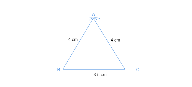 畫一個△PQR,其中PQ=4釐米,QR=3.5釐米,PR=4釐米。這是什麼型別的三角形?