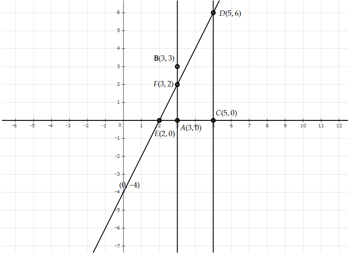 直線AB、CD和EF分別表示方程 $x=3$、$x=5$ 和 $2x-y-4=0$。