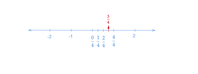 讓我們畫一條數軸。我們知道$\frac{3}{4}$小於$1$。所以,它位於$0$和$1$之間。
